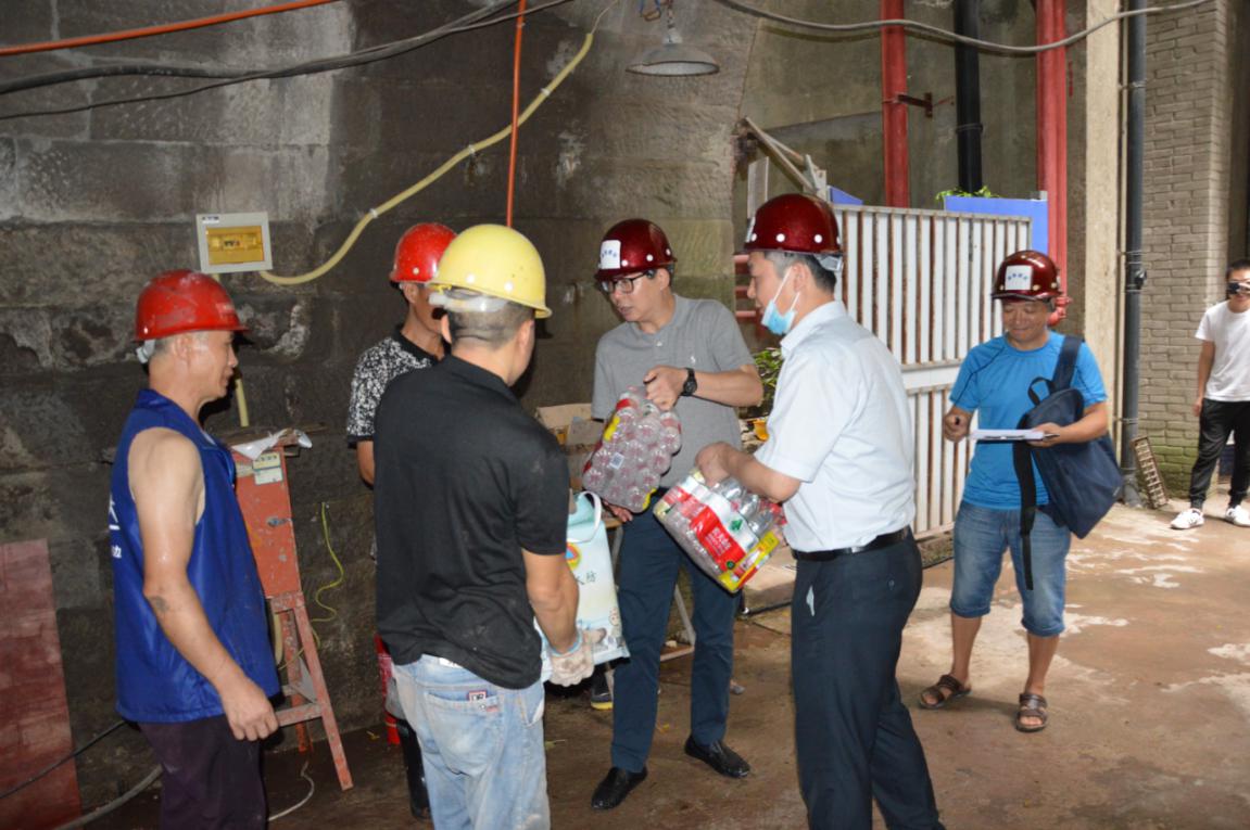 骄阳似火,持续高温。8月11日,区人民防空办党组书记、主任姚文勇一行来到人防工程建设施工现场和解放碑大井巷社区,慰问建筑工人和社区工作者,为他们送去了藿香正气液、十滴水、矿泉水、凉茶、遮阳伞、纸巾等降温用品。